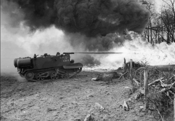 The North Shore Regiment had been ordered to advance toward the Rhine. Its Commander, Lt. Col. John Rowley, was known as the Good Shepherd for the long walking staff he usually carried. The regiment closed on Keppeln with the two lead companies advancing on either side of the narrow, paved road that ran into the middle of town. As they approached the innocent looking barn at the edge of town, they stumbled into a concealed German strongpoint. From the edge of town an infantry gun opened up, followed by a well-concealed Sturmgeschütz and significant crossfire of small arms. The Canadians sent in their Wasps to burn out the defenders.Attacker: Canadian (North Shore Regiment, 8th Brigade, 3rd Canadian Infantry Division/C Squadron, 1st Hussars)