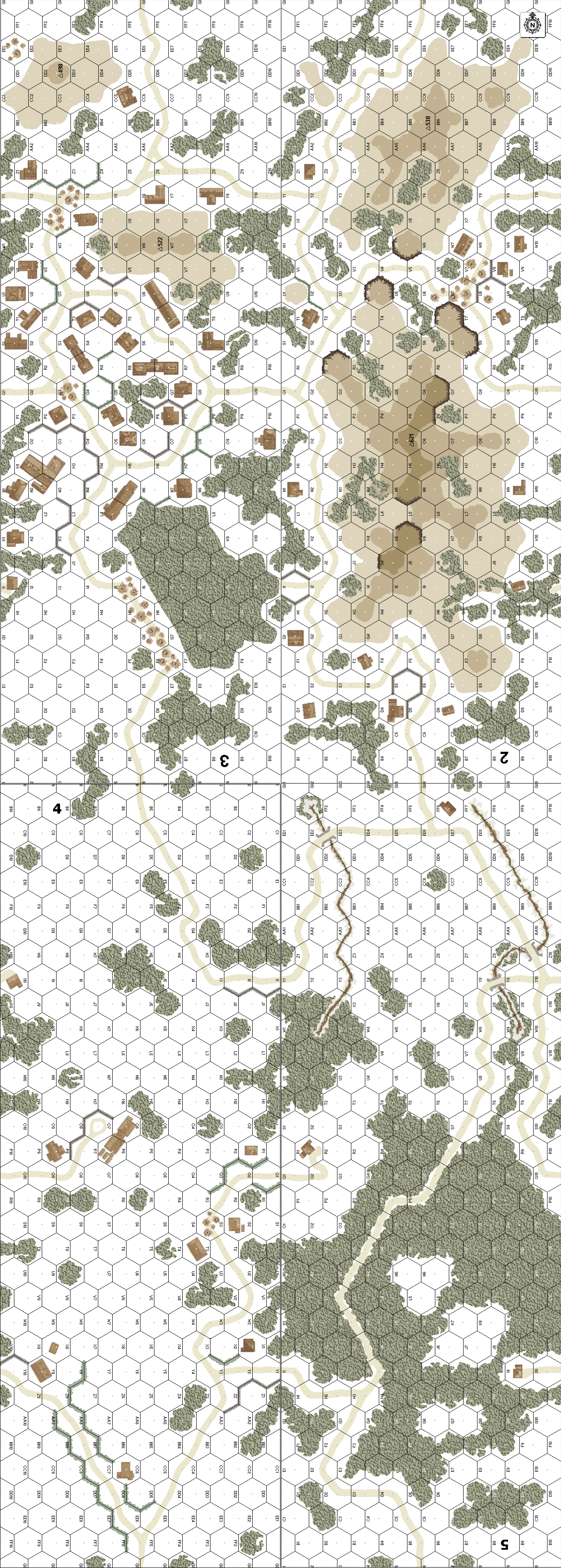 | Misc Rules: | GS (E3.72). Bd 3 two hills modified, Bldgs: Wooden. A: 82mm mortar may NOT set up emplaced. |