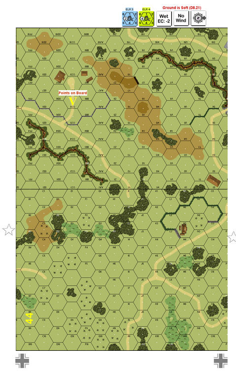 | Misc Rules: | Mist (E3.32), No voluntary Abandonment of AFVs (exc: SPW 251/sMG), D: AFV |