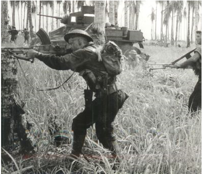 Australian M3 Stuarts supporting infantry near Buna