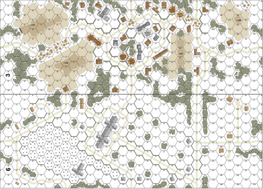 Misc Rules: GS, no German unit may enter a whole hex of Board 6.