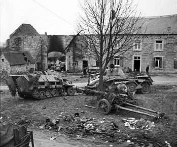 The 2nd Panzer Division stood within 6 km of the Meuse River. The entire division was low on fuel and fatigued from continuous fighting. General Collins disregarded orders and sent the 2nd Armored Division in for the attack. The 82nd Recon Battalion was sent to the western flank of the attack, and was to screen toward the west as far forward as the Lesse River, south of Celles. On 25 December, the 2nd Panzer Division Recon Battalion and part of the Division’s artillery had bivouacked near the quiet farming village of Foy-Notre Dame.Attacker: American (82nd Recon Battalion, 2nd Armoured Division)