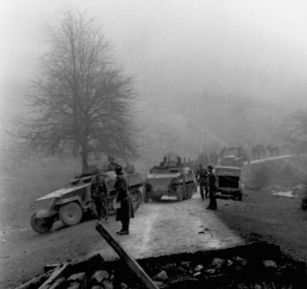 The first battle at Stoumont was a clear victory for the SS, but not maneuvering had only added to the Kampfgruppe's growing fuel supply problems. Unfortunately Peiper did not yet know that the second and larger of the U.S. First Army's depots, with more than 2 million gallons of gasoline, was located near Cour - just north of La Gleize. On December 18th, the only American troops that stood in his way were the HQ Company of the 9th Armored Group: 5 halftracks, 2 assault guns and some Belgian Fusiliers. During the night, 90mm AAA guns and trailer-mounted Maxsons were added to the hastily organized defenses. At about midday on the 19th, a small German reconnaissance patrol of six AFV probed the area.Attacker: German (SS) (Kampfgruppe Peiper)