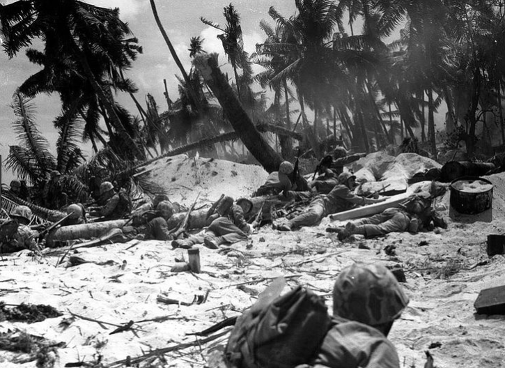 The Marine planners had committed a major error in assuming that the erratic tides of Tarawa Atoll would allow assault craft to drop troops right on the heavily defended island of Betio. Instead, the tide was exceptionally low, and the attackers found that only the limited number of Amtracs could waddle in to shore. Still, the 2/2 Marines in the first wave had reached Red Beach Two in the island's center at 0922 and met little resistance in the water, although their CO had been killed and replaced by an observer from another division. Meanwhile, General Shibasaki's men were recovering from the extensive but largely ineffective bombardment, and quickly shifted to the invasion side of the narrow atoll.Attacker: Japanese (2nd Special Naval Landing Force)