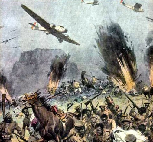 At dawn on 3 October 1935, 100,000 Italian troops crossed the northern frontier of Ethiopia in three large columns. "We have been patient for 40 years," Mussolini announced to the vast crowd assembled in the Piazza Venezia. "Now, we too want our place in the sun." The Italians met no resistance, as Haile Selassie wanted no doubt as to who was the aggressor, and the Ethiopian armies pulled back 30 kilometers. On the second day of the march, however, it was discovered that Ras Seyum, commander of the Army of Tigre, had sent several groups into the "neutral zone" against the Emperor's wishes. One of these troops, numbering some 500 men under the command of Dejaz Gebriet, had established itself on Amba Augher, which lay directly in the path of Pitzio Biroli's advancing Eritrean Army Corps.Attacker: Italian / Eritrean (Elements of the 2nd and 4th Askari (Eritrean) Brigades)