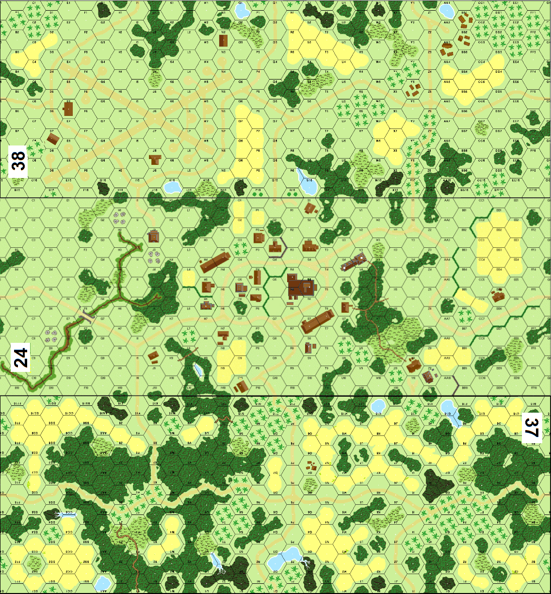 | Misc Rules: | PTO, LJ (Exc: roads exist), no valley, wood bldgs. D: under PIN counters Turn 1 (Exc: HIP) |