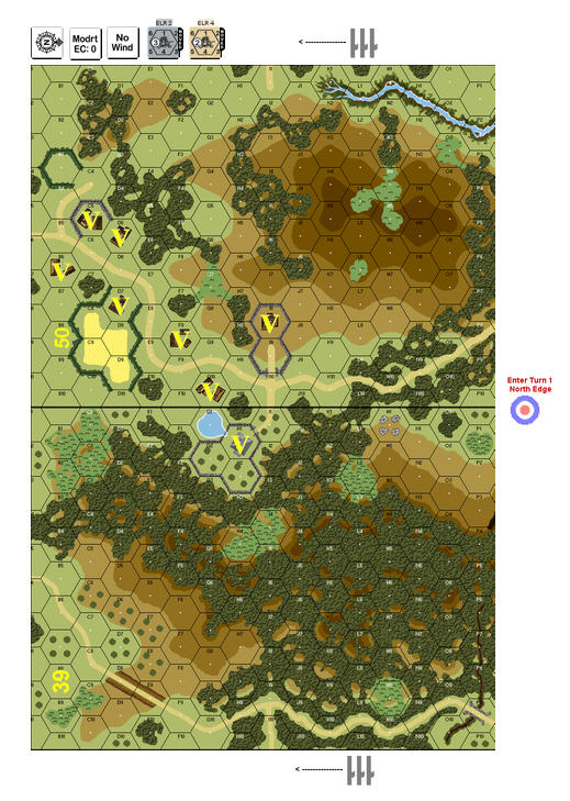 | Misc Rules: | Pine Woods (B13.8), Stream: Shallow. D: Any MMC that Battle Hardens instead goes Fanatic |