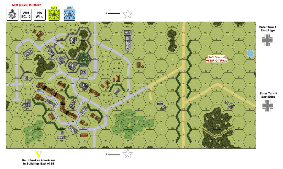 | Misc Rules: | Mist, Soft Ground (+1 MP off road) |