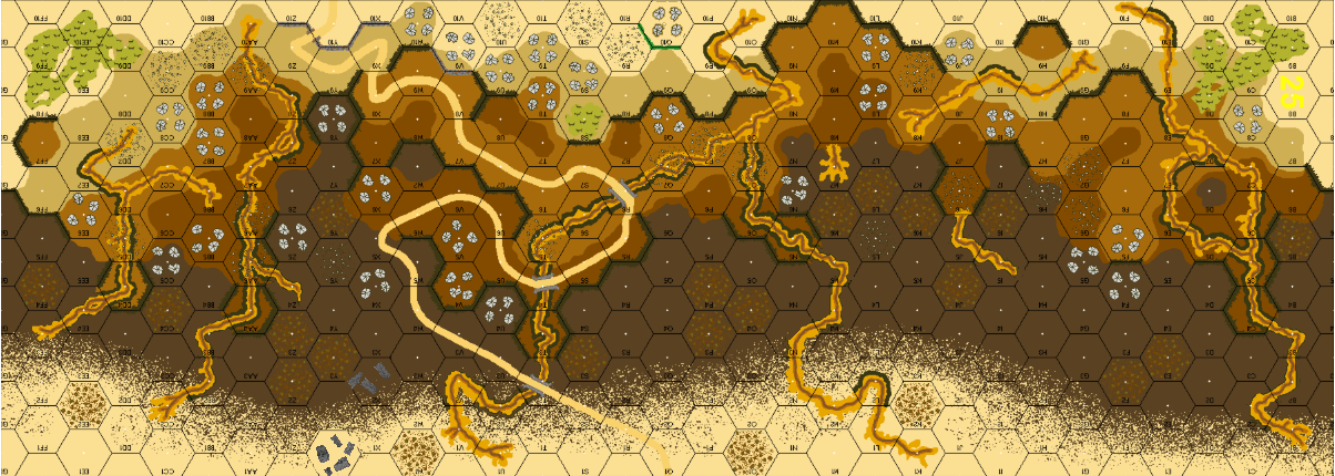 | Misc Rules: | Broken Terrain (F13.1), Buildings are Crags. no Level 4 wadi cliffs |