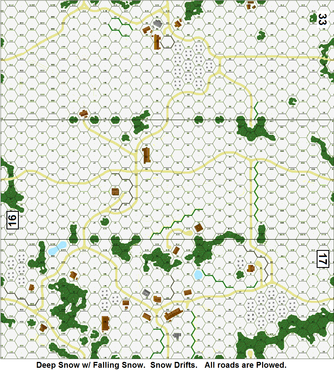 | Misc Rules: | Deep Snow, FS, Drifts but Plowed Roads. w A: pre-game Bombardment and D: WC |