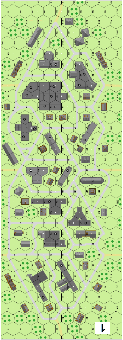 | Misc Rules: | Treat Woods as Orchards, Stone buildings, bldg hexsides like Row Houses. CI in effect w A: AS |