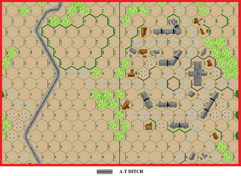 Misc Rules: Mud (E3.6). A: No British tank is recalled for disabled MA, D: A-T Ditch, Mines (B28), FB (B23.9)