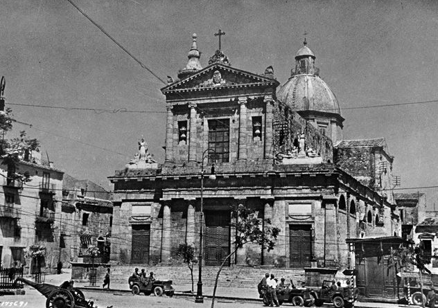 The cathedral in the central area of Gela was one of the first buildings captured by U.S. Army Rangers during operations on the island of Sicily.