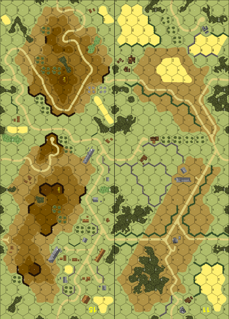 | Misc Rules: | Hedges: Bocage (B9.5), Crags: Orchards, Mist (E3.32) 12 Hex Visibility. A: PzVIH: Sz (D11.2) |