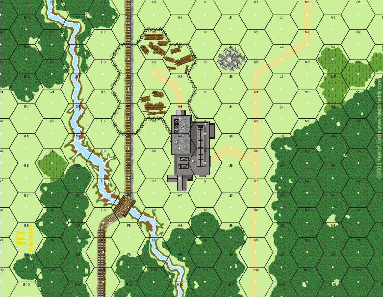 | Misc Rules: | Variable OB both sides, Stream shallow, Wood bridge could collapse (B6.42) |