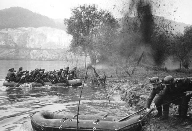 The northernmost of the three crossing attempts of the Meuse took place late in the day as advance elements of the German 2nd Panzer Division approached the river in the face of fierce crossfire from the western bank. As a preliminary to gaining a bridgehead, assault engineers would have to cross the river and silence the well-prepared French positions on the far side.Attacker: German (86th PanzerGrenadier Regiment, 10th Panzer Division)