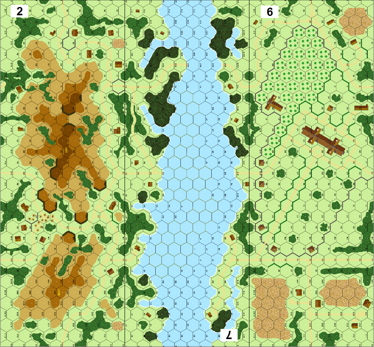 | Misc Rules: | Bd 7: No Islands in river. Bd 6 Bldgs: Wooden, A: Raft (E5.122) |