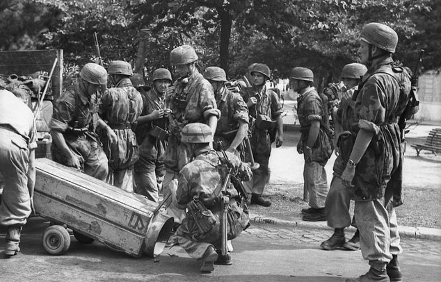 Fallschirmjägers discharging equipment during Operation Achse
