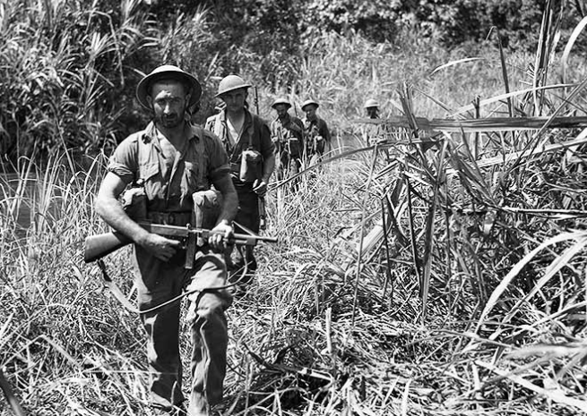 The push northward to Buka Island and its airfield was taken up by the largely untried Australian 11th Brigade soon after its arrival on Bouganville. The advance ground to a halt as the Japanese dug in. The Allies had grossly underestimated the size of the Japanese force on the island. To get things going again, a militia company was sent on a flanking movement across the Genga River with orders to interdict Japanese reinforcements. With no retreat path, the Aussies had to dig in and resist a series of bruising counterattacks.Attacker: Japanese (Elements of 81st Regiment)