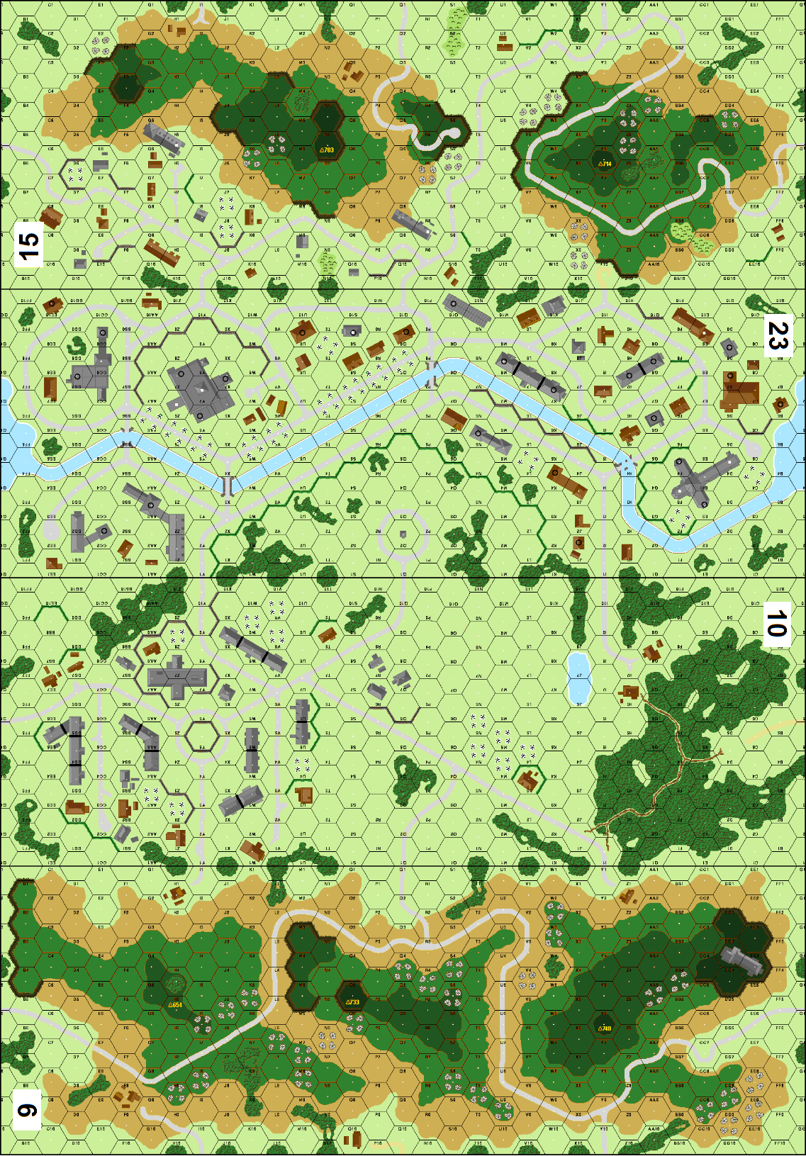 | Misc Rules: | Paved rds, Level 2 hills and above are Wooded, canal impassable except by single bridge |