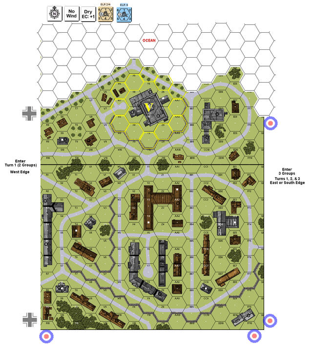 Attacker: German (Kompanie 2 and 3, Fallschirmjäger Bataillon I & II)