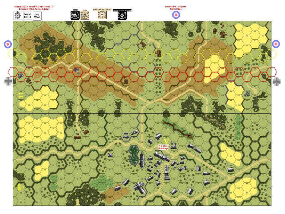 Misc Rules: Mist (E3.32) Turns 1-3, Bocage (B9.5) A: Bombardment (C1.8), D: FB (B23.9).