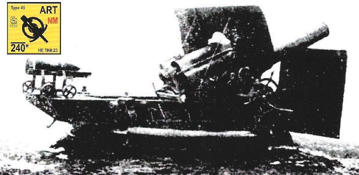 | Guns: A:2 82mm BM obr. 37 x 2 D:6 50mm RM obr. 40 x 2 Type 96 15cm Howitzer x 2 Type 45 240mm Howitzer x 3 Type 97 Curved-Fire Infantry Gun |