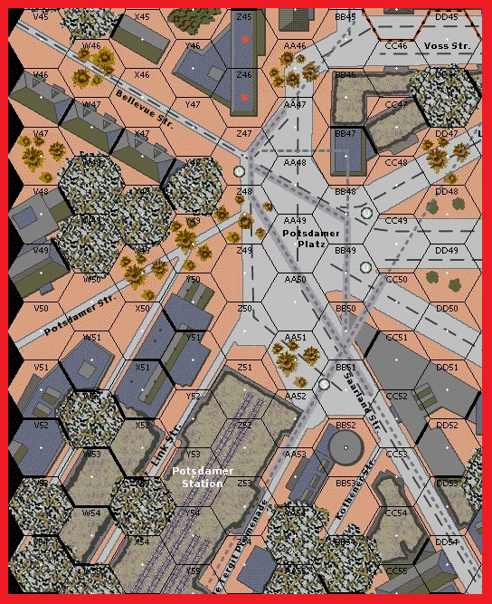 Finally clearing the Potsdam Railroad Station, the 79th Guards Rifle Division reached the Muenchburg Panzer Division's headquarters located in the underground station under the Potsdammer Platz. Guarding the entrances was the crippled King Tiger commanded by Unterscharfuhrer Turk. With its drive train damaged this tank could barely move but the 88mm gun was still able to deal death. Between the fire from Turk's tiger and the headquarters troops firing from the fortified entrances to the station the Red Army was unable to clear the plaza. The SS had set off explosives in the tunnels to block an attack from underground. Not making any progress the 79th halted the attack to re-group. Out of ammo and unable to move Turk and his crew abandoned the tiger and slipped into the rubble. Getting another tiger Turk would again see action during the break-out two days later. With the massive German tank out of action the 79th was able to clear the plaza on May 1st.Attacker: Russian (Elements of the 79th Guards Rifle Division)