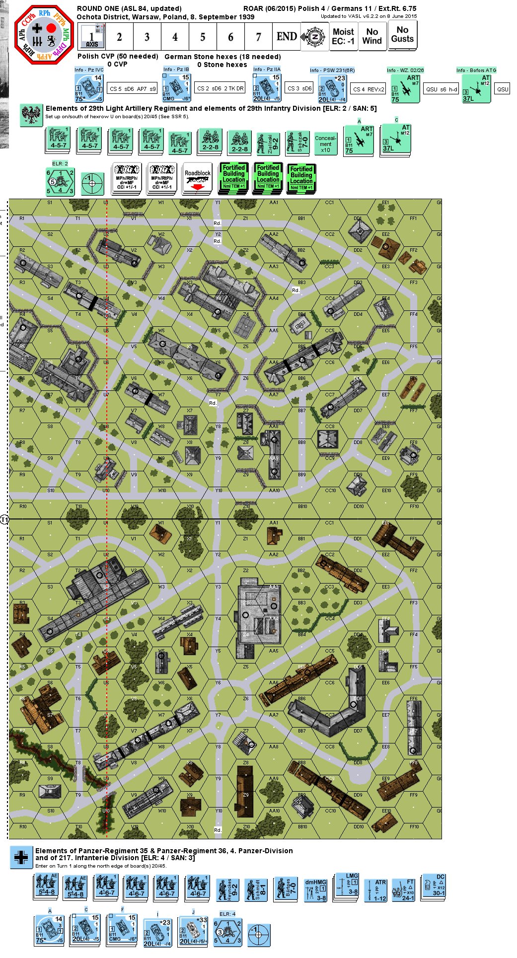UPDATED VERSION -- A little more than a week after the invasion of Poland, German units of the 10th Army were at the gates of Warsaw. Despite some panic and confusion, the citizens were urged to help with anti-tank ditches and defenses. The 4th Panzer Division was tasked with penetrating the city in the Ochota district although not well-suited to the task. Awaiting these forward elements were guns and soldiers of the Polish 29th Infantry Division. They had moved into the district the previous evening and the guns were aimed over open sights to cover the area's avenues with deadly crossfire. The war's first contest over Warsaw was about to begin.Attacker: German (Panzer-Regiment 35 & 36, Panzer-Division 4, Infanterie Division 217)