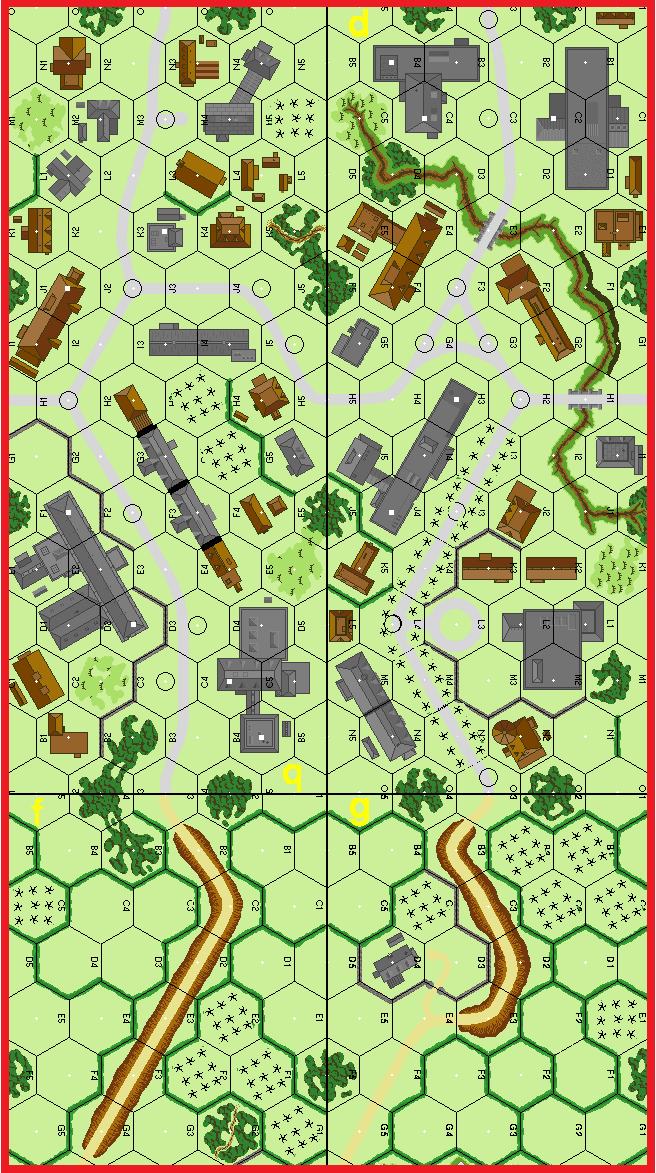 | Misc Rules: | Pre-game rubble, +2 LV Turn 1, +1 LV Turn 2. D: HIP Roadblocks |