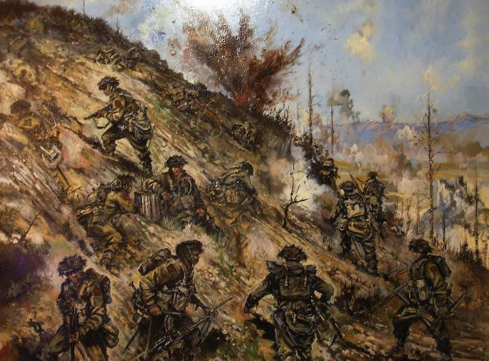 Continued assaults against the heights surrounding the monastery rewarded the New Zealand Corps only with more casualties and frustrations. At 1400 hours word came over the radio that C Company of the 1/9 Gurkhas had fought their way to the top of hangman's Hill and routed the German garrison there. The news was like a shot in the arm for the beleaguered Kiwis. in just a few hours, the 1/6 Rajputanas along with Companies A & B of 1/9 Gurkhas joined their comrades at the summit to await the inevitable counterattack. They didn't have long to wait.Attacker: German (1/4 Fallschirmjager Regt)