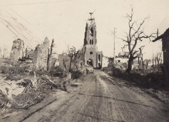 On November 5 the Americans had been easily routed from the town of Vossenack near the German/French border. The advancing German troops had orders to hold the town at all costs. The exhausted men of 2nd Battalion, 893rd Regiment who drew the assignment of re-taking the town were far too under strength to dig the Germans out. To help out, Captain Ball and Company A of the 146th Combat Engineers were moved up to the east side of the town with orders to take the large church which was the main point of the German's defense.Attacker: American (Co B, 2nd Bn, 893rd Rgt and Co A, 146th CE Bn)