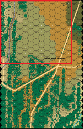 Despite the use of a combined-arms force, the final attempt to clear the Quatre-Bras crossroads had failed. The hulks of a dozen tanks littered the plain in mute testimony to the failure. Major Fraser, the CO of the nearby paratrooper force, re-grouped his men at the outskirts of a copse, near the railroad line. Visibility was bad, the terrain to cross was uphill, and the path of attack was densely wooded. Worse, the Americans faced an enemy that was dug in and in possession of numerous guns and automatic weapons. Progress would have to be slow and cautious. . .but without mercy.Attacker: American (Task Force Fraser, 517th PIR and 32nd Tank Regiment, 3rd Armored Division)