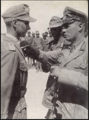Gunter Halm fought at the First Battle of El Alamein, where he, despite the fact that his gun had taken a direct hit which had wounded two of the crew, successfully destroyed 15 tanks of the British 23rd Armoured Brigade at Ruweisat Ridge