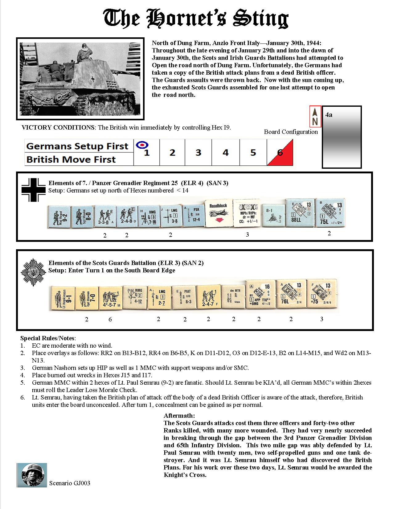 | PDF Version of the Scenario (ASL - GJ003 - The Hornet's Sting.pdf) | Misc. | grumblejones | 1622 |