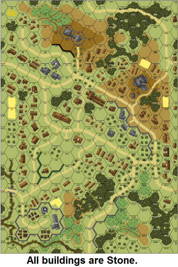 | Misc Rules: | Bldgs: Stone. NQ (A20.3) in effect. |
