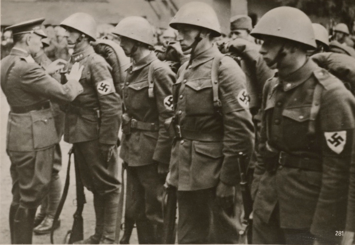 Carpathian Germans (soldiers of the Slovak Army) being decorated by Ferdinand Čatloš after the Invasion of Poland.