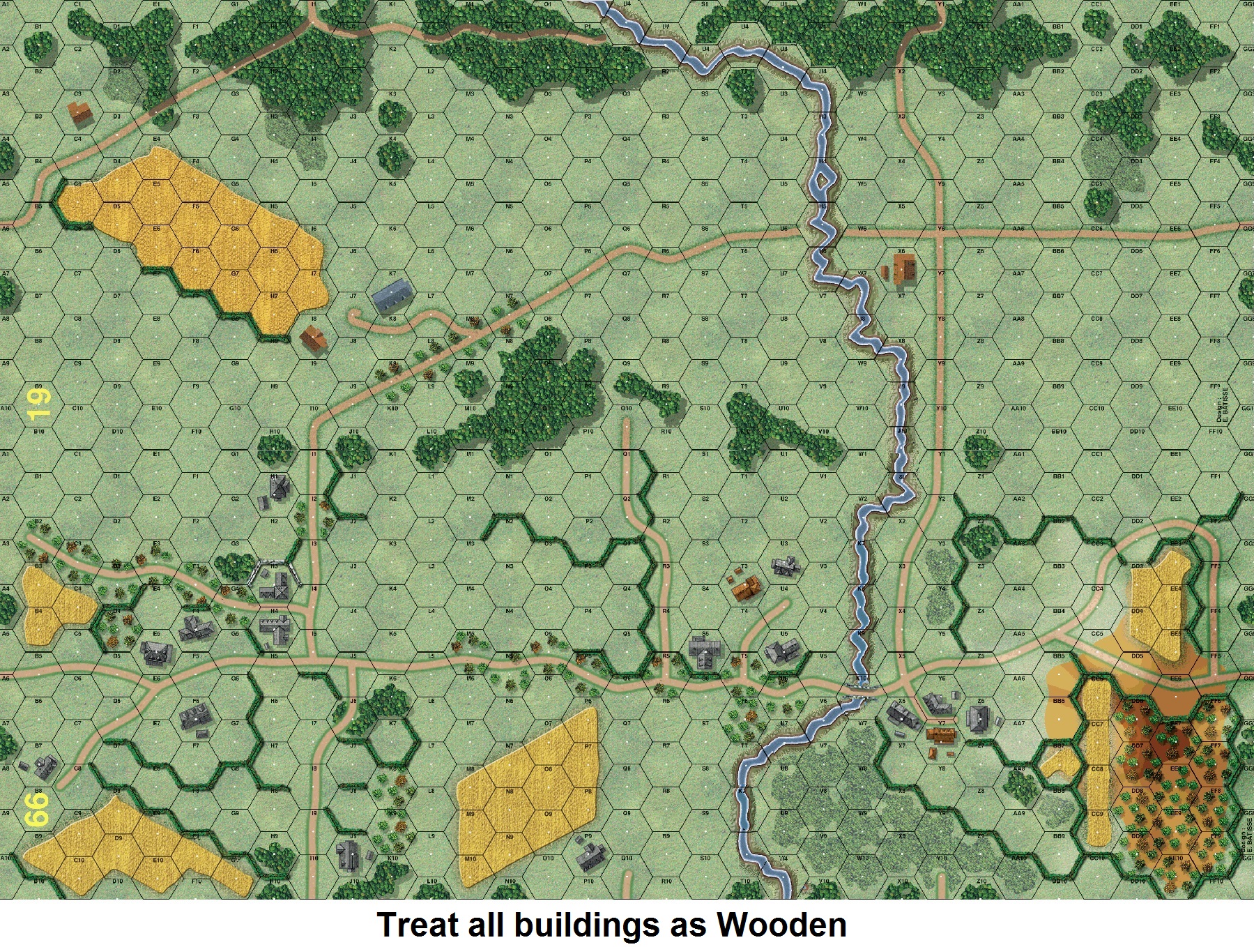 | Misc Rules: | Wooden Buildings. Variable OOB both sides by dr. A: AEs with DCs are Fanatic |