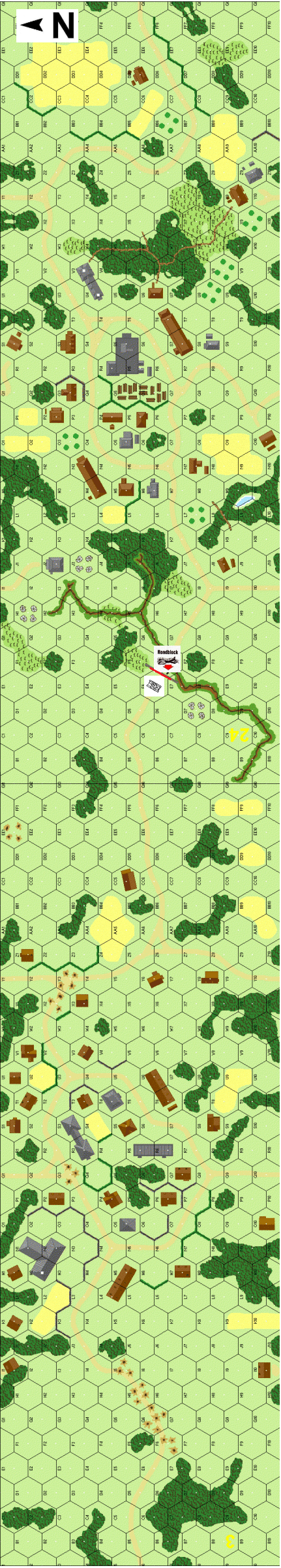 Ste. Mere-Eglise was under strong attack from the north so the 507th Parachute Regiment was shifted into a supporting position SW of the town, leaving only the 1st Battalion of the 505th Parachute Regiment facing the Germans at La Fiere. The obsolete French tanks employed by the Germans on the Cotentin had been dealt with harshly in the streets of La Fiere the previous day, with four destroyed by a mere handful of paratroopers. Now the Germans would employ them again in more advantageous terrain. . .Attacker: German (Grenadier-Regiment 1057, Luftlande-Infanterie-Division 91 and Panzer-Abteilung 100)