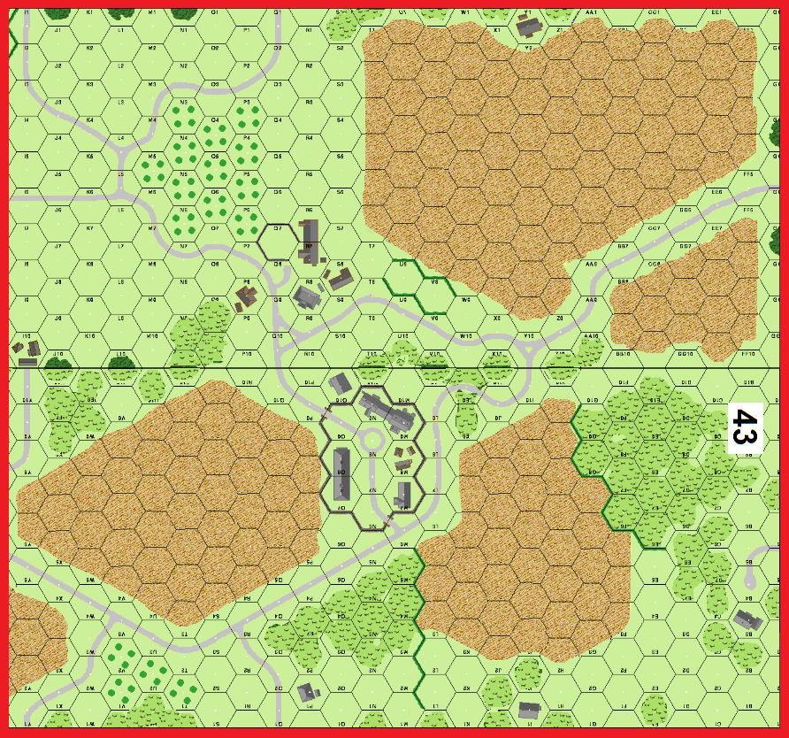 | Misc Rules: | Treat Woods as Brush. Paved Rds. Plowed Ground like Mud for AFVs |