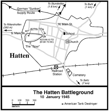 Dawn of 10 January held up hope for OKW that their stalled NORDWIND offensive was being reinvigorated. Hatten was largely theirs, and the neighboring village of Rittershoffen appeared lightly defended. Beyond those villages, the terrain was more suitable to panzers in this otherwise mountainous region. To complete the victory, fresh men and tanks from Panzer-Division 21 were committed. Despite the setbacks of the previous day, the Americans remained equally confident they could reestablish the original line east of Hatten. They too were committing new infantry, with the soldiers of 315th Infantry Regiment replacing the depleted battalions of the 242nd. Both sides gathered for an attack on the morning of 10 January, but the Germans struck first with an assault at 0800hrs, just a few minutes before the Americans.Attacker: German (Bataillon I, Panzergrenadier-Regiment 125 and Panzer-Abteilung 1, Panzer-Regiment 22, Panzer-Division 21)