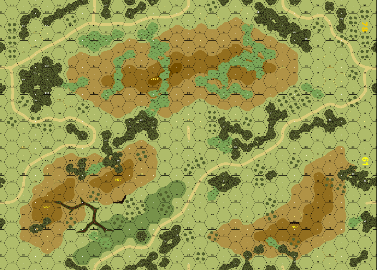 This scenario depicts the first tank-versus-tank action during the Korean War. Here, the 21st Infantry Regiment along with M-24 Chaffee tanks, counterattacks across board 61 to clear the KPA 18th Regiment and two T-34/85s from the hill on board 78.Attacker: American (21st Infantry Regiment, 24th Infantry Division and elements of the 78th Tank Battalion)
