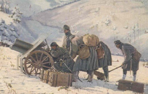 Following the fire of a lone Turkish patrol, Russian General Myshlayevski cancelled his planned assault on the Turks. His soldiers were soon in retreat on 25 December. Not all pulled back, however. Some two thousand Russian troops, backed by two field guns held the outskirts of Sarakamish. The Turks, their own offensive planned, marched on the town from Kose and Otlu. Temperatures plunged, and as the Russians awaited the oncoming enemy, General Winter got to work as their ally as hundreds of Turks froze to death during the night. On 27 December, Turkish General Envers arrived at the front to press the attack.Attacker: Turks (3rd Army)