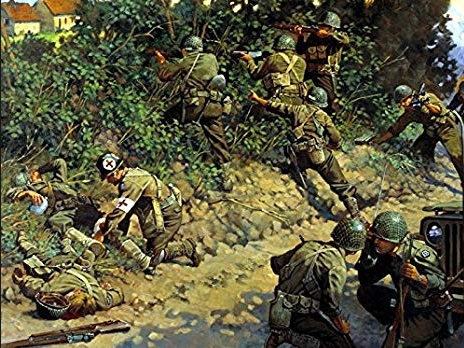 The 1st Battalion, 116th Infantry Regiment, 29th Infantry Division struggled across the Elle River and having to fight through many fields surrounded by the boucage. Orders have come down to take the village of Covains which is defended by elements of the German 352 Infantry Division. The US soldiers face one more difficult field, with one more hedgerow, to clear the way towards St. Lo.Attacker: American (Elements of 1st Battalion, 116th Regiment, 29th Infantry Division)