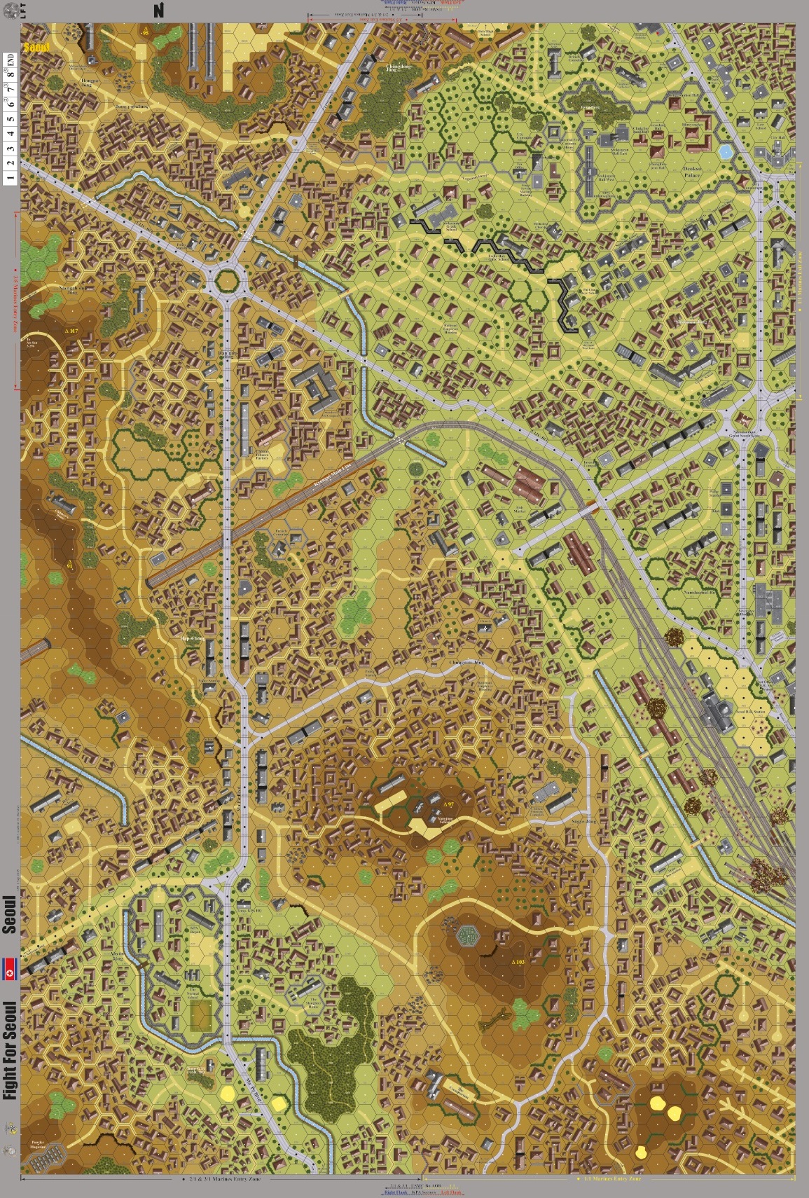 "The Seoul campaign game is CG II (Battle of the Barricades); it is 11 dates long, taking place from September 25-27. It uses the entire Seoul map. The attacking UN win if they control two key clusters of hexes and control or eliminate a roadblock. Here the UN forces are all almost USMC (a few platoons of Korean Marines are purchaseable), with essentially the same purchase options as Smith’s Ridge. The North Korean options are very similar as well." - Desperation Morale websiteAttacker: American (USMC) (No more details)