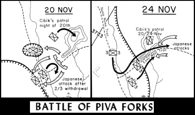 As elements of the 3rd Marine Division pushed eastward to expand its beachhead on Bouganville, 1st Lt. Steve Cibik’s reinforced platoon was ordered to occupy a small knoll with a commanding view of Empress Augusta Bay. Shortly after arriving, the Marines routed a group of approaching Japanese, and at noon repulsed an organized attack. Cibik requested reinforcements which later arrived in the form of a 60mm mortar section. The Marines spent a quiet but nervous night. The next morning, however, things changed.Attacker: Japanese (23rd Infantry Regiment, 6th Infantry Division)