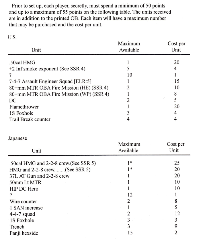 | Misc Rules: | Initial OB, PTO (G.1), DJ (G2.2), Trailbreaks (B13.421), US armor crew are Marines w/ ML 8. |