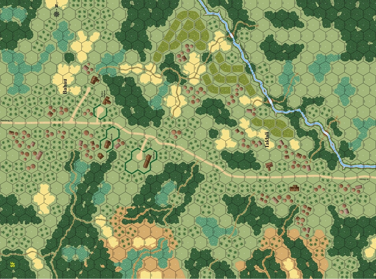 The island of Timor was crucial to the Japanese expansion plans in early 1942. This island formed an important land bridge between the Australian mainland and Java and Sumatra. The Japanese invasion of Timor had begun at early morning 20 February with a seaborne landing on the undefended southwest coast by two battalions of the 228th Infantry Regiment and attached marines. In support of this landing, an airdrop of Japanese Naval paratroopers was conducted to the east of the main Allied defenses which were centered around the town of Koepand and the Penfui airfield. The Japanese paratroopers' objective was to secure the airfield and encircle the defending Australian and Dutch troops of "Sparrow Force." The paratroopers moved west towards the airfield after landing and used the main east-west road to Penfui airfield as their axis of advance. The first village between the drop zone and Penfui was Babau, which was being used by the Australian 2/40th Battalion headquarters and rear echelon. Babau became the focal point of engagements between the Australian and Japanese forces over three days. After finally securing this location, another critical battle was fought in the nearby village of Oesau. Despite a large portion of the Japanese paratroop force being destroyed, the overwhelming numbers of Japanese in the seaborne landing forced many members of the Sparrow Force to surrender. The fight at Timor would switch to a guerrilla campaign led by Australian commandos from the 2/2nd Independent Company. Mini-CG Game consists of Scenarios J228, J229, J230.Attacker: Japanese (Yokosuka 3rd Special Naval Landing Force and 228th Infantry Regiment, Eastern Detachment)